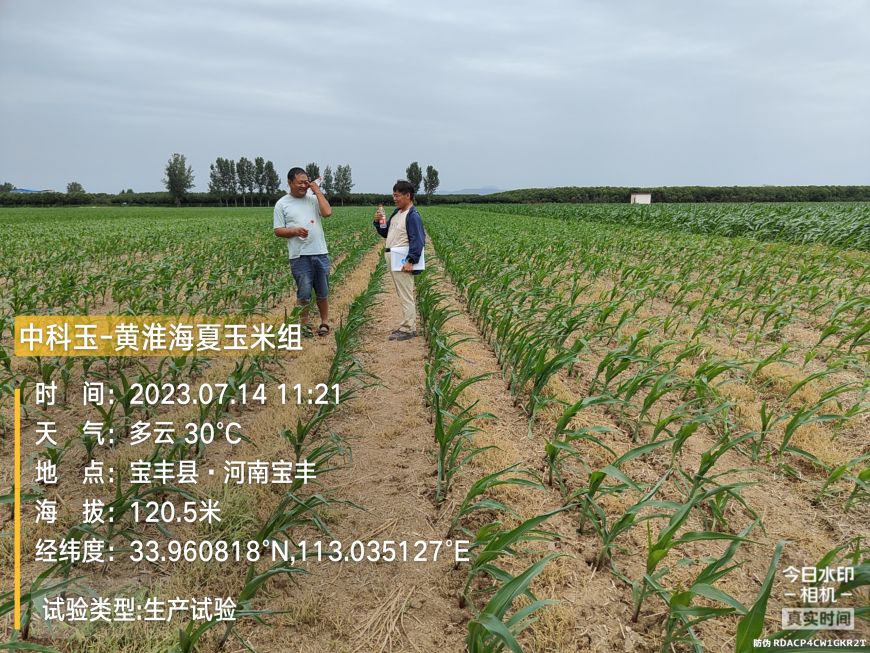 7月14日考察河南寶豐試點,試驗類型:黃淮海夏玉米組,區域試驗,生產試驗。承試單位:寶豐縣秋實農業有限公司。試點描述:試驗地選址規范,排水處理較好,田間管理及時,保護行符合要求,出苗整齊,試點綜合評價優。