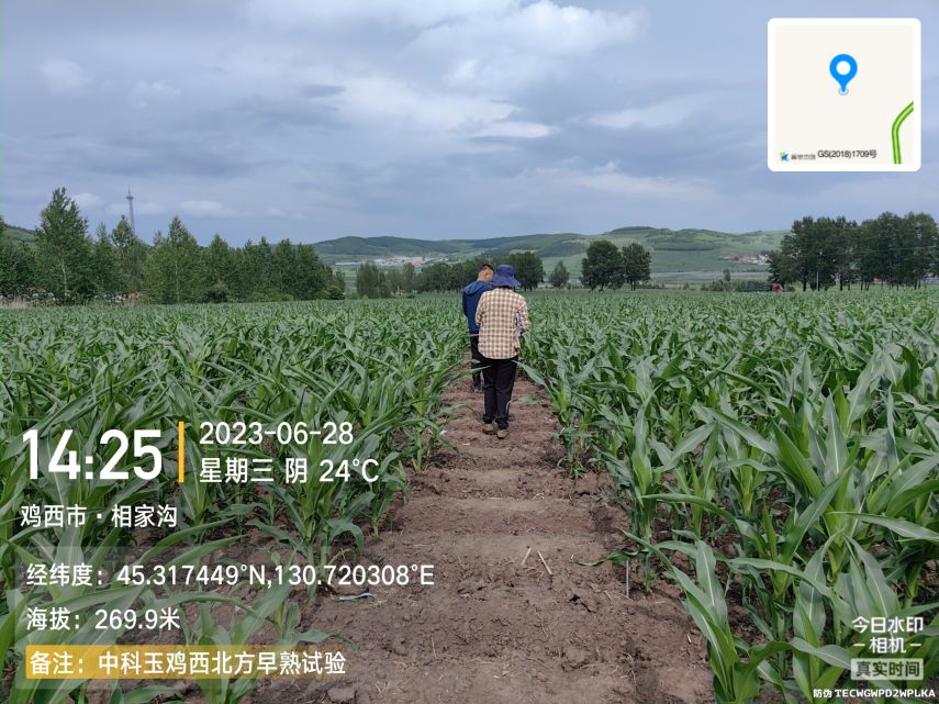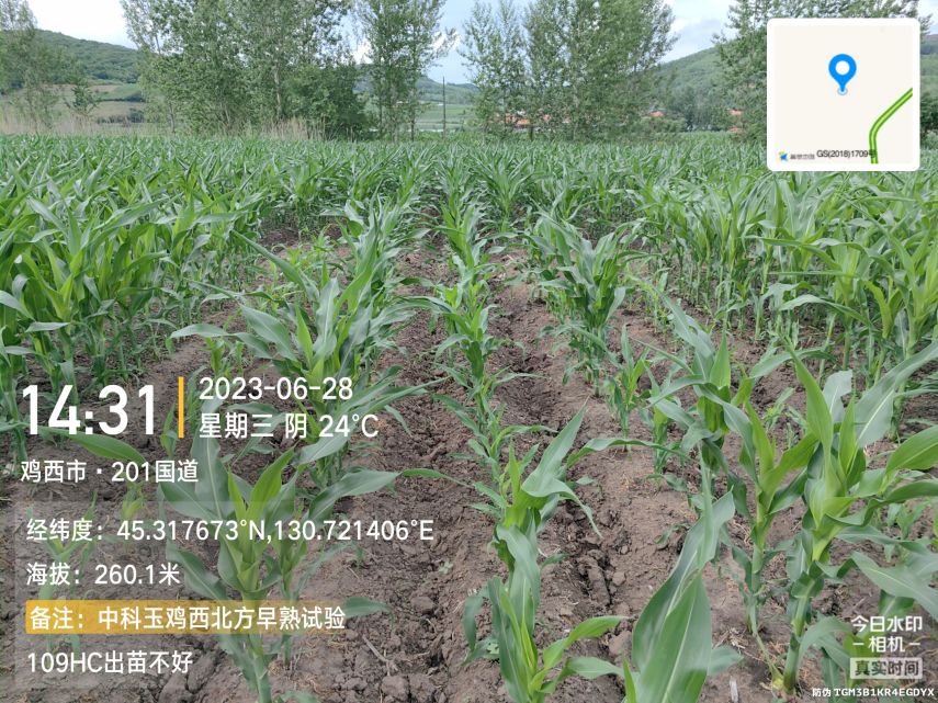 6月28日考察黑龍江雞西試點(diǎn)。試驗(yàn)點(diǎn)承擔(dān)北方早熟區(qū)域試驗(yàn)、生產(chǎn)試驗(yàn),交通較便利,田間規(guī)劃清晰合理,基本按照試驗(yàn)方案執(zhí)行,間隔道1.5米,地勢平坦,地力均勻,出苗較齊,有大小苗,個別品種缺苗移苗,密度滿足試驗(yàn)要求,綜合評價(jià)優(yōu)。