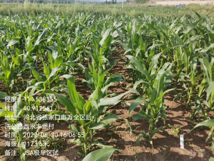6月25日考察了河北張家口試點;試驗類型:北方極早熟區試/生試/預試;是由張家口市惠君農業科技有限公司承試;試點描述:高溫干旱,整地不勻,個別缺苗,大小苗,偏施肥。試驗人員專業負責,田間管理到位,長勢好。