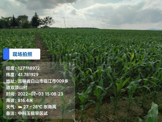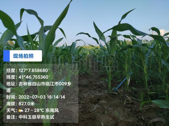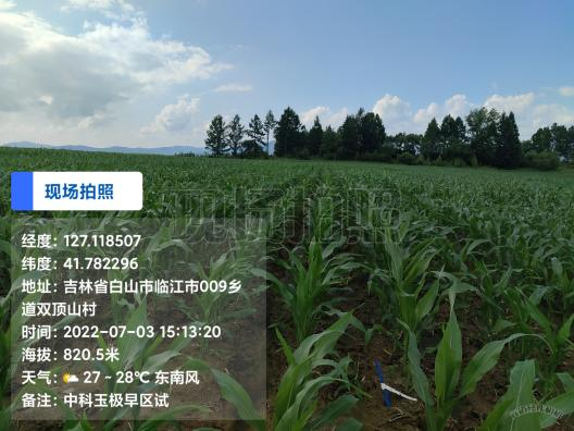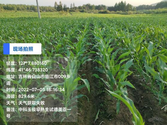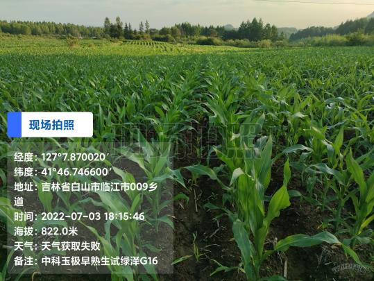 7月3日考察吉林省臨江試點;試驗類型:北方極早熟區試/生試;是由臨江市益農農業科技服務中心承試;試點描述:因低溫多雨,出苗不齊有大小苗現象。試驗人員專業負責,田間管理到位,長勢好。
