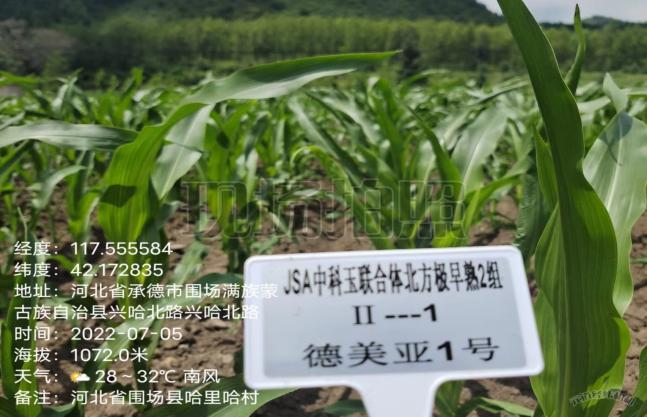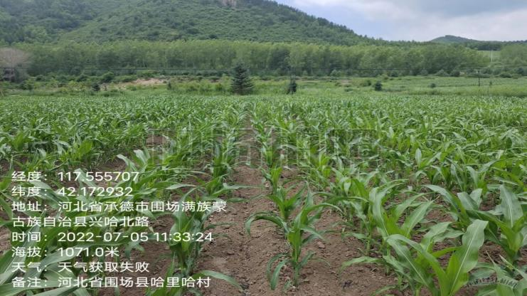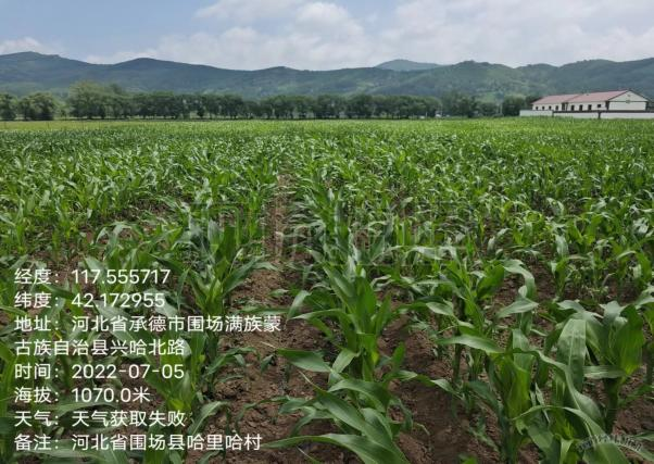 7月5日考察了河北省圍場試點;試驗類型:北方極早熟區試/生試;是由承德市圍場縣佳禾種業公司承試;試點描述:播種期低溫、低濕,苗期高溫、低濕有粉籽現象,保苗率90%以上,個別品種有大小苗,玉米展開葉片數7-8片。試驗人員專業負責,田間管理到位,長勢好。