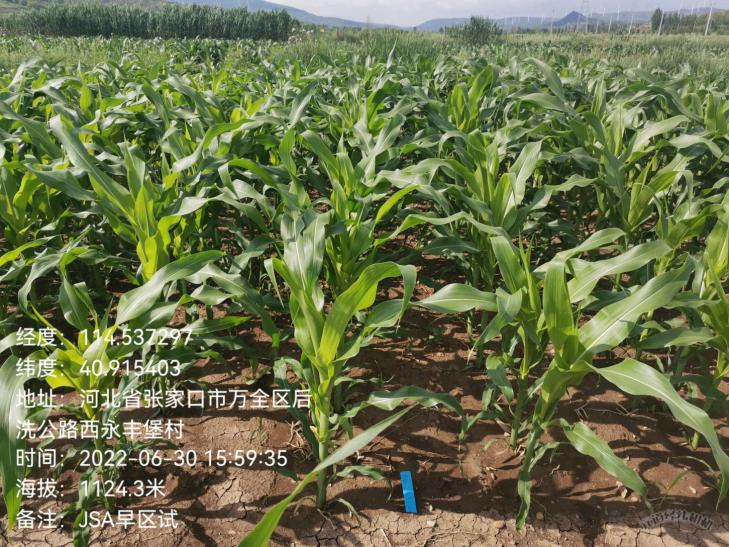 6月30日視頻考察河北張家口試點;試驗類型:北方早熟區試/生試,是由張家口市惠君農業科技有限公司承試,試點描述:該點春季低溫干旱,出苗滿足試驗要求,個別品種出苗不勻有大小苗,玉米展開葉片數9片,試驗人員專業負責,田間管理到位,玉米長勢較好,苗齊苗全。