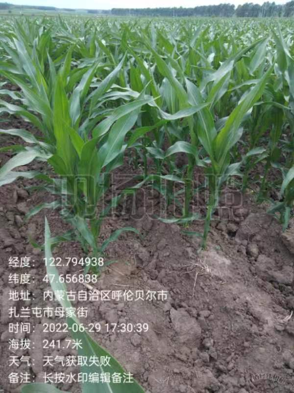 6月29日考察了內蒙扎蘭屯試點;試驗類型:北方早熟區試/生試;是由內蒙古蒙新農種業有限公司承試,國家指定點;試點描述:春季低溫多雨,出苗不勻,個別品種有大小苗,玉米展開葉片數8片。試驗人員專業負責,田間管理到位,玉米長勢好。