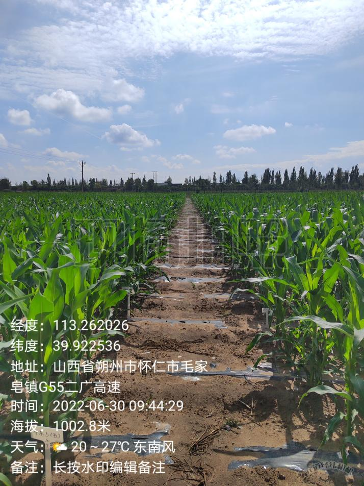 6月30日考察了山西省懷仁試點;試驗類型:北方早熟區試/生試;是由山西農業大學高寒區作物研究所承試;試點描述:播種后到6月1日前地溫偏低,但由于采取了地膜覆蓋種植,基本不影響玉米正常生長。出苗很好,個別品種出苗不均有大小苗,玉米展開葉片數11片。試驗人員專業負責,田間管理到位,長勢好。