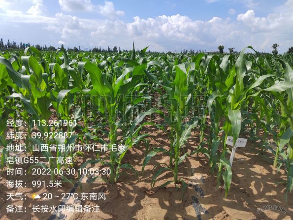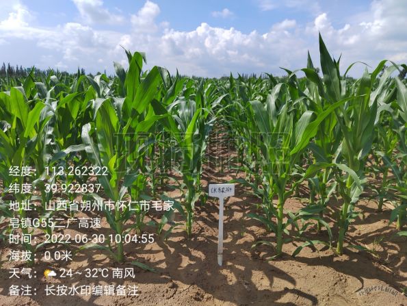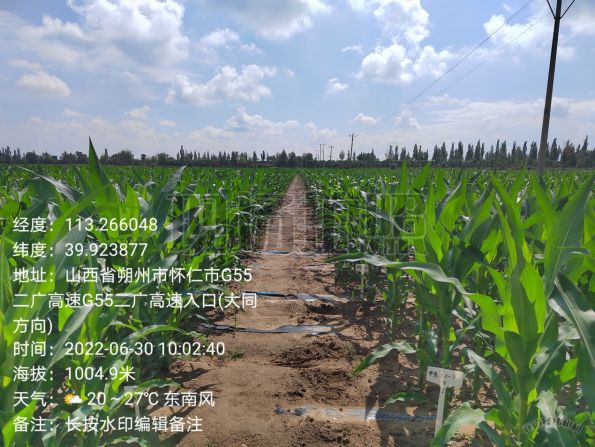 試驗(yàn)類型:東華北中早熟區(qū)試、生試試驗(yàn);是由山西省農(nóng)科院高寒區(qū)作物研究所承試;試點(diǎn)描述:試驗(yàn)采用覆膜滴灌種植模式,播種后進(jìn)行了滴灌,苗期墑情好。在5月2日播種后到6月10日,整體氣溫較往年偏低,基本沒有有效降雨。5月26日噴施苗后除草劑,苗期長(zhǎng)勢(shì)特別好,幼苗健壯。幼苗長(zhǎng)勢(shì)整齊。賽德2022于5月12日播種,5月25日出苗。福盛園309于5月9日播種,5月23出苗。睿德282于5月9日播種,5月23日出苗。5月2日播種,5月17日出苗。5月25日間苗,試驗(yàn)人員專業(yè),田間管理精細(xì),配合考察積極,綜合評(píng)價(jià)優(yōu)。