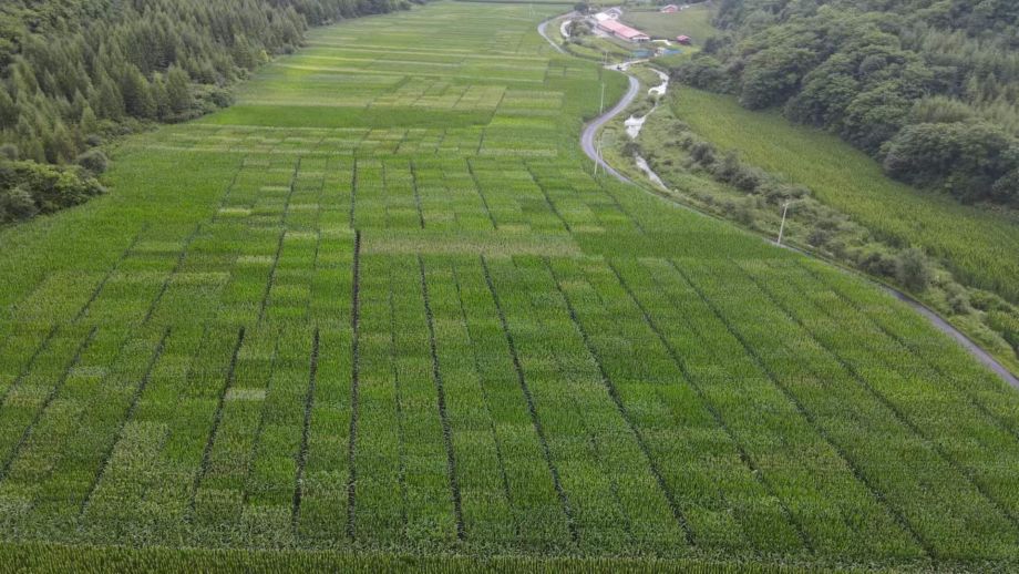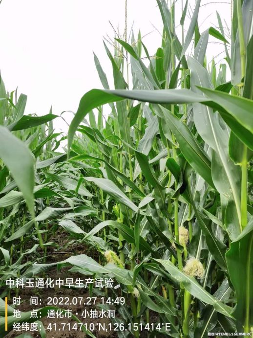 中科玉吉林通化中早熟區(qū)試、生試點(diǎn)由梅河口市稼禾玉米研究所承擔(dān),從播種致花期持續(xù)低溫多雨,花期濕度、溫度益于大斑病發(fā)生并較其他中早熟點(diǎn)要重,持續(xù)多雨有缺氮表現(xiàn),苗全、勻、齊,對于品種比較有重要意義,試驗點(diǎn)交通便利,管理規(guī)范,布局清晰,感謝董本春老師及測試團(tuán)隊對于中科玉聯(lián)合體試驗這么多年的關(guān)注和支持,試驗點(diǎn)周圍環(huán)境也非常好,順著河連成片,航拍圖片不足以展示整體試驗規(guī)模的壯觀,一副畫在山水間!