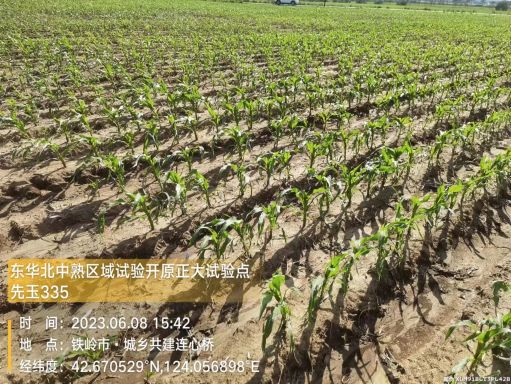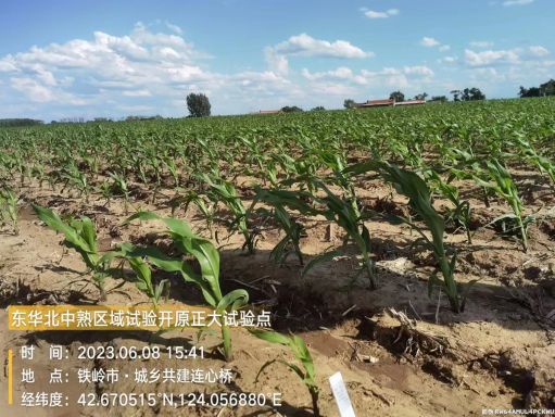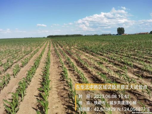 2023年6月8日考察遼寧開原,東華北中熟區域試驗及生產試驗點,由襄陽正大種業股份有限公司承擔,試驗點交通便利,苗檢時 5葉 1 芯,試驗執行符合方案要求,田間管理到位,苗勻齊壯。有兩行漏播。已建議及時補種極早熟品種避免影響臨近小區,綜合評價優。